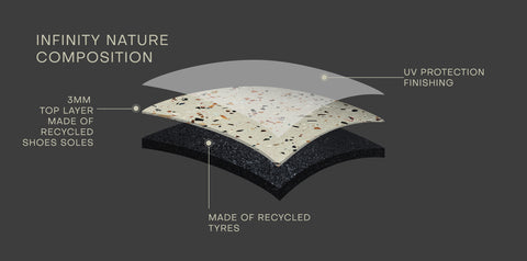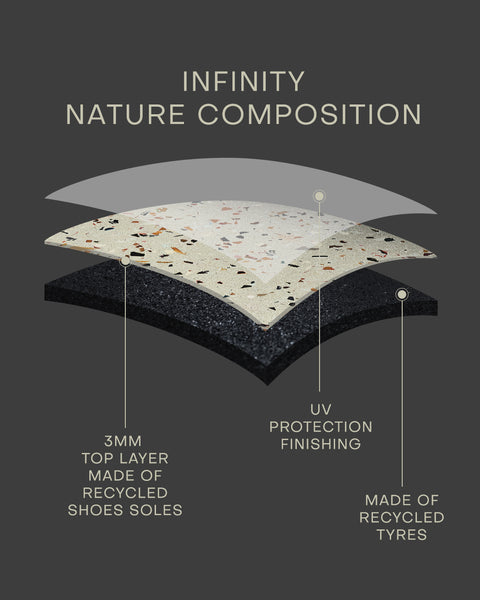 Este acabamento premium suave, combinado com o nosso incrível espectro de cores Nature, permite que a GOMA ofereça algo único no mercado: a capacidade de transformar o seu piso na extensão da sua identidade. A Coleção Nature está disponível em 7 paletas de cores. Com a função de absorção de impactos do Classic, a nossa linha Infinity destaca-se pelo efeito de continuidade do piso, graças às suas bordas quadradas.