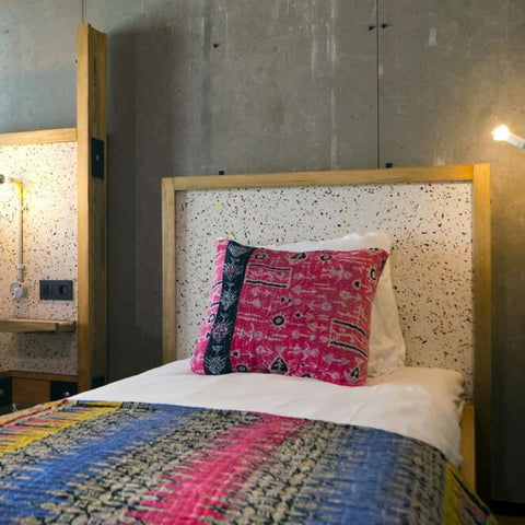 A Flowco teve a oportunidade de participar da construção do novo JAM Hotel, um hotel que pretende ser um exemplo de atitude responsável e ecológica no coração de Lisboa, Portugal. Um conceito de construção que gira em torno da sustentabilidade e tem o planeta no centro das decisões de construção. A Flowco desenvolveu 226 cabeceiras de cama para os quartos feitas com solas de sapatos recicladas e 1.450 metros lineares de rodapés feitos com pneus de carro reciclados.